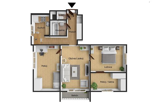 Prodej bytu 3+1 s šatnou/pracovnou a balkonem – oblíbená část Poruby