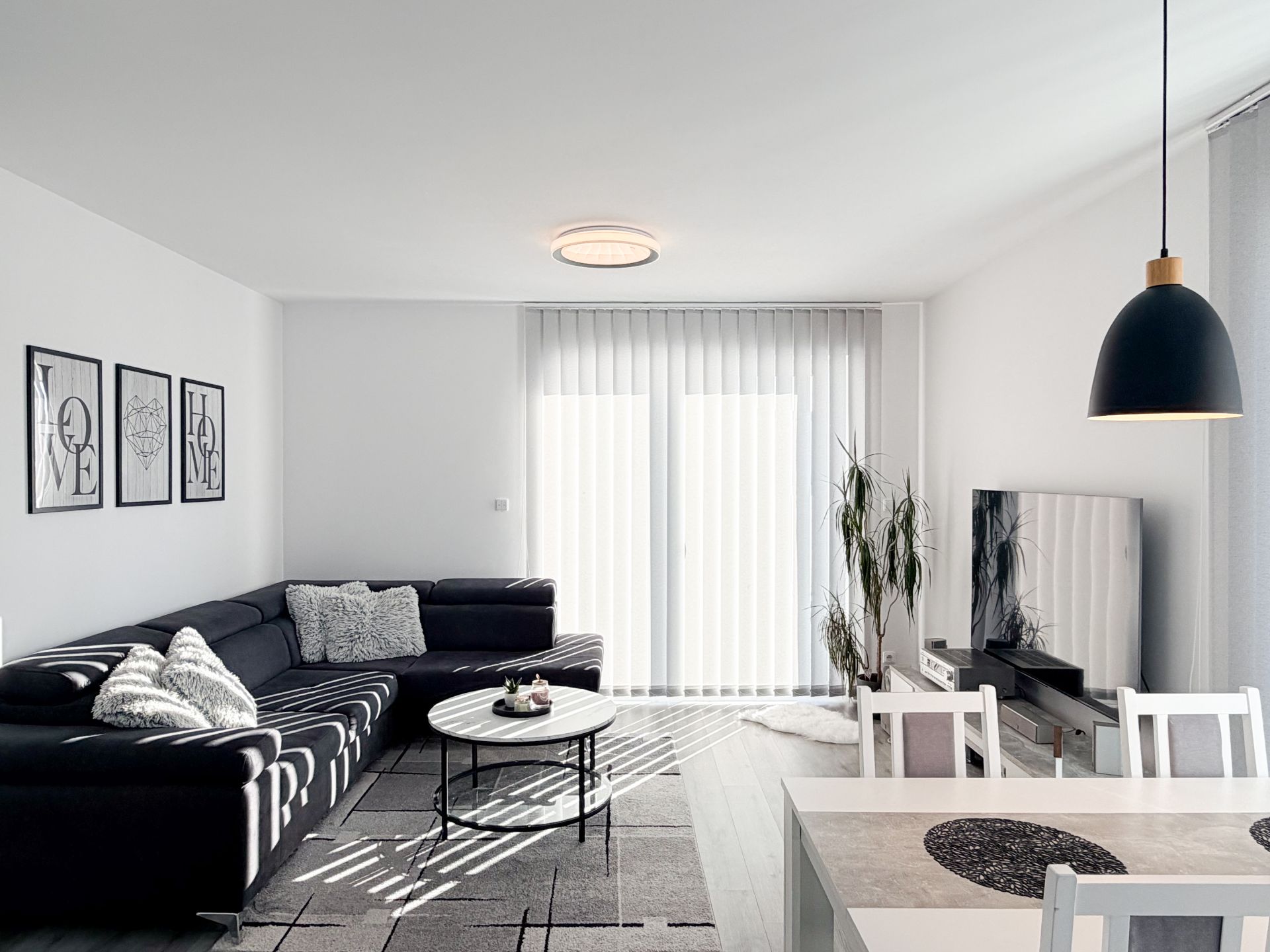 Dispozice domu je řešena velmi prakticky. Dominantou je propojená kuchyně s obývacím pokojem, která tvoří přirozené centrum celého domu. Dále dům nabízí další tři samostatné pokoje, šatnu, koupelnu s WC, samostatné WC pro hosty a technickou místnost. Celková podlahová plocha domu činí 98 m².