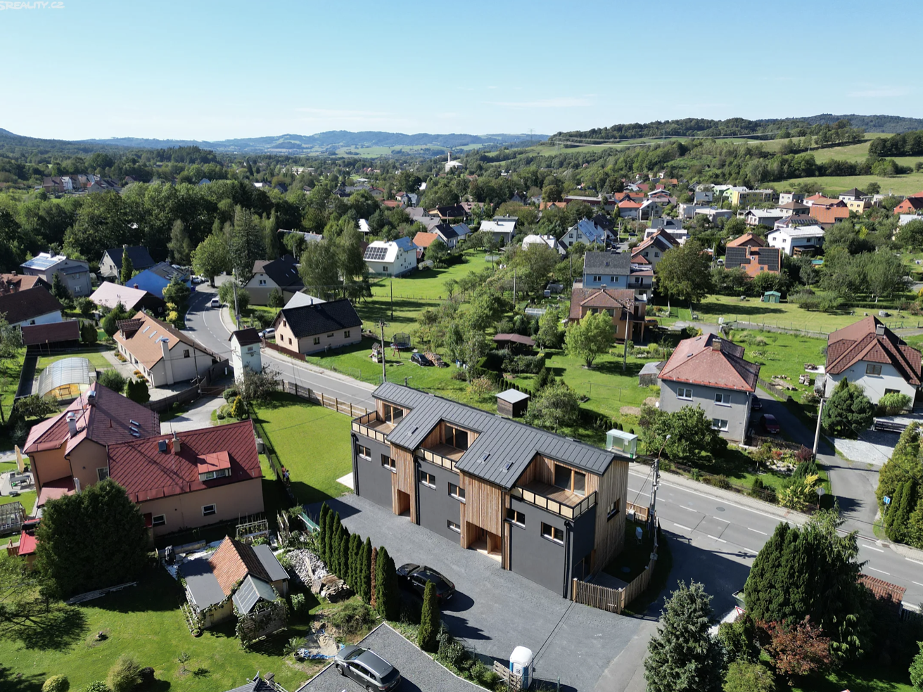 Hledáte bydlení v blízkosti hor a současně v obci s dobrou občanskou vybaveností? Představujeme Vám nový projekt 3 řadových domů v obci Veřovice, s výhledem na Javorník. Objekt je postaven z moderních masivních celodřevěných panelů CLT, které kromě statické funkce plní také ve většině interiéru pohledovou funkci. Stejnou technologií jsou provedeny i stropy a střešní konstrukce. Dřevo tak zůstane ve většině interiéru pohledové, bude opatřeno pouze speciálním odolným UV nátěrem. Ostatní vnitřní stěny budou obloženy sádrokartonem pro dotvoření akustického komfortu, opatřeny budou štukem a výmalbou.